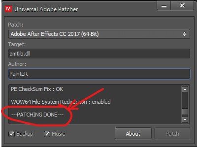 B8: Chọn mục Adobe After Effects CC 2017 (64bit). Sau đó nhấn Patch