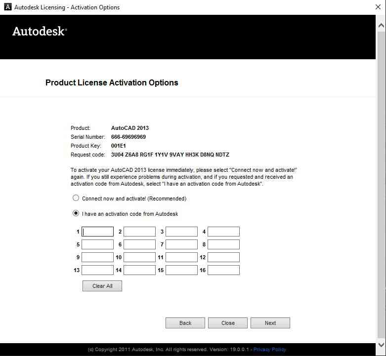 Copy Activation dán vào ô I have an activation code from Autodesk