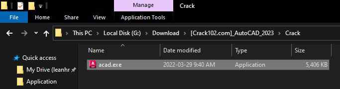 Chép đè file acad.exe vào thư mục cài đặt