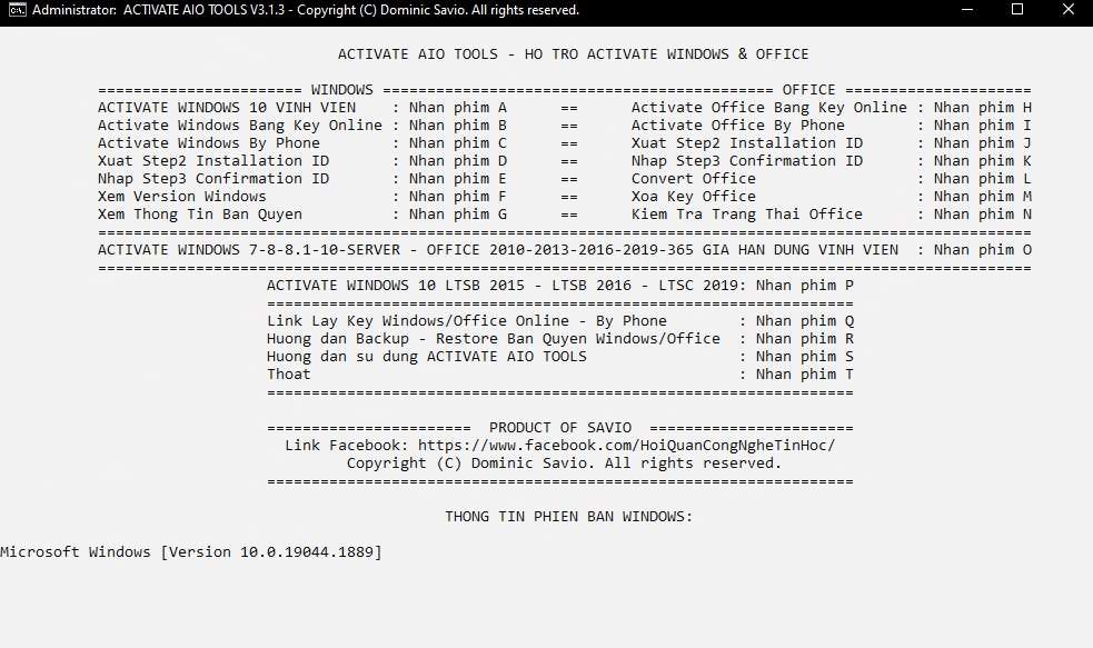 AIO Tools v3.1.3 - là một trong những bộ công cụ được tạo ra bởi Dominic Savio, nó có công dụng giúp chúng ta kích hoạt bản quyền của hệ điều hành Windows 8, Windows 10, Windows 11 và toàn bộ phiên bản Office.
